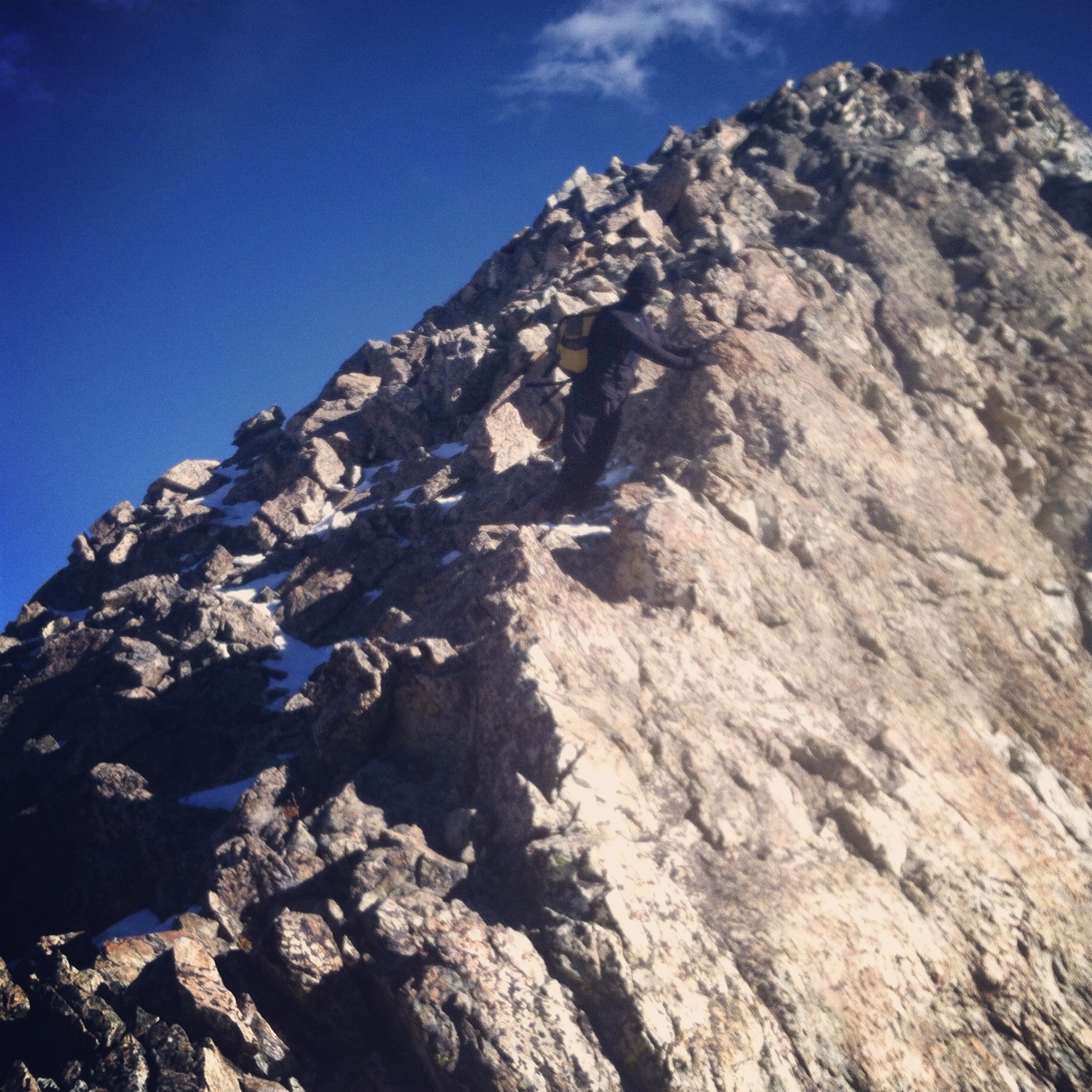I remember the first time I climbed a mountain and I thought, “I would die for this.” it was South Teton, and I was alone. You’re always unproportionately scared when you’re alone. But as I scrambled up this loose and snow filled gully, it wasn’t the first time I assumed risk and did something dangerous. It was the moment I realized the level of risk I was assuming and I said, yes. I will. It was a great relief, like a low pressure system moved in and the sky itself put less pressure on my body.
